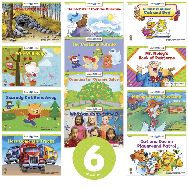 Creative Teaching Press Learn to Read Guided Reading Leveled Readers Classroom Pack is for grade level D. They a great way to improve fluency, sight word knowledge and build vocabulary as it incorporates natural language, strong picture support and easy-to-read repetitive text. Lively stories imparts the love of reading, builds self-confidence and helps young reader’s master important early learning concepts. The leveled readers in this series is an ideal complement to any beginning reading program. It assists kids in learning by making use of the guided reading level that suits their needs. The content subject areas comply with the common core standards. Sold as 72 per set, 6 books of each title.