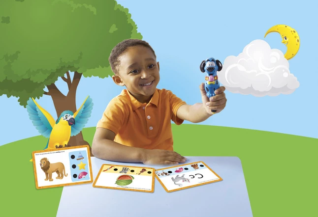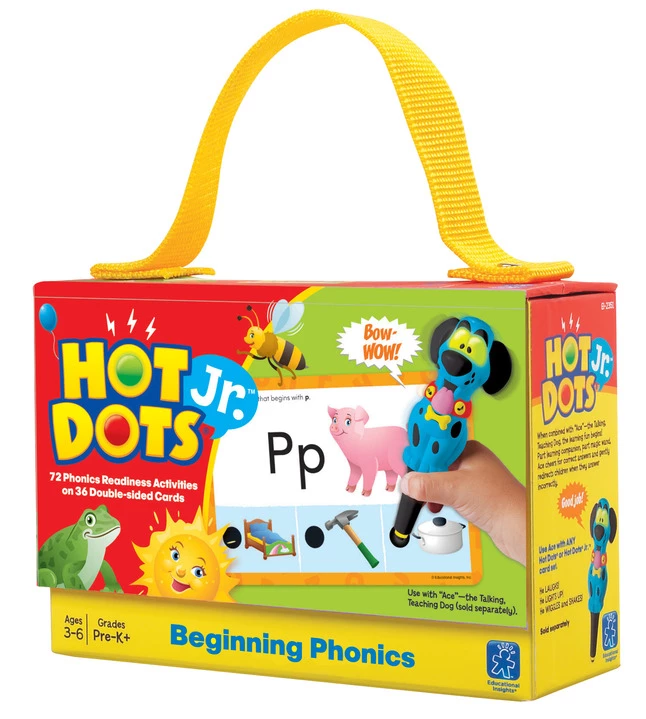 Getting ready for school has never been this fun! Set of 72 beginning phonics activities on 36 double-sided cards teach children all they need for success including initial & final sounds and rhyming words. Cards can be used alone as traditional flash cards or use with Talking Hot Dots Pens (available separately). Grades PreK+. Ages 3-6