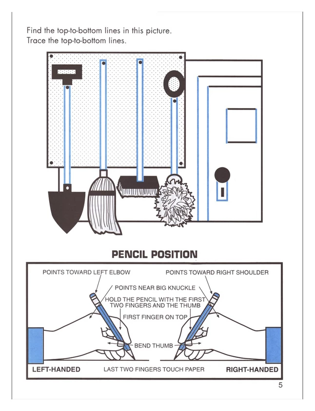 - Lessons include basic strokes and progress in difficulty as pages continue, with units including top-to-bottom lines, left-to-right lines, forward and backward circles, and right and left slants