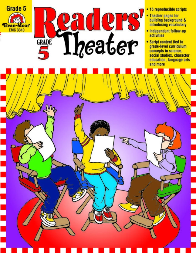 Evan-Moor “Reader’s Theater” Book for grade 5 renders repeat reading practice, an important fact in building fluency. Book of 144 pages includes 15 complete scripts and offers all the fun as well as interest of full-scale dramatic productions without the staging challenges. It can be used to practice reading orally with fluency and expression, making content area instruction come alive.