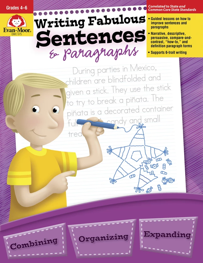 - Presents lessons and activities that progress from writing sentences to writing paragraphs in a clear, concise manner
