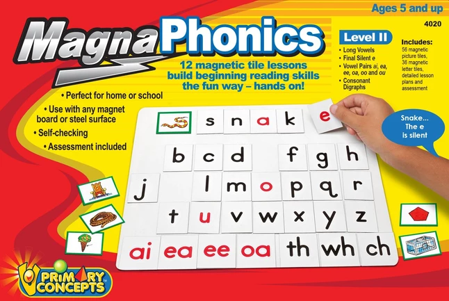 - This MagnaPhonics Level 2 set teaches rhyming, soft and hard ācā and āgā sounds, CVCe and other long vowel spelling patterns, consonant digraphs, and vowel pairs