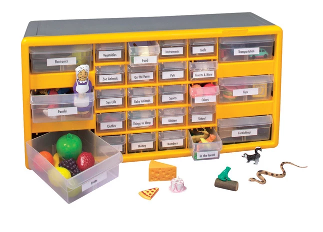Includes: (200) Realia objects, (26) drawer organizer, (72) page Realia guidebook, (4) Double-sided Sorting Mats, (20) Journals