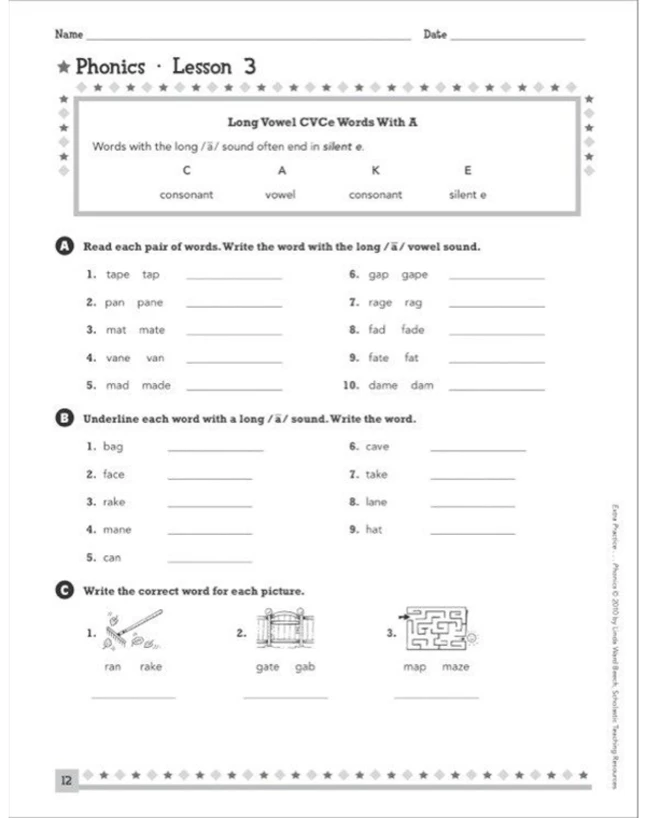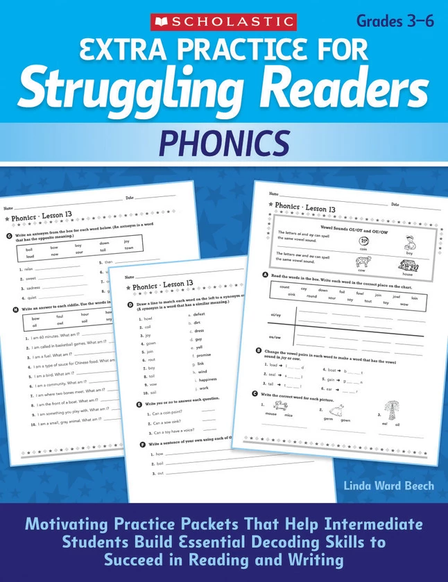 - This resource offers dozens of practice pages that give struggling readers multiple opportunities to recognize, review, and reinforce must-know phonics elements, such as consonants, long and short vowels, blends, digraphs, and more