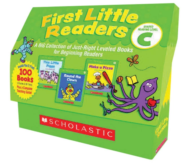 First Little Readers, by Liza Charlesworth is written for Level C readers. Inside the sturdy storage box, you will find 100 books full color books (5 each of 20 titles). Each book is 8 pages and features one line of simple, repetitive text to help children learn to read with ease and confidence. Includes a 32 page teaching guide and reproducible literacy boosting activities. Children’s book measures 5-1/2 x 5-1/2 inches. Teaching guide measures 8-3/4 x 10-7/8 inches. Grades PreK to 2.