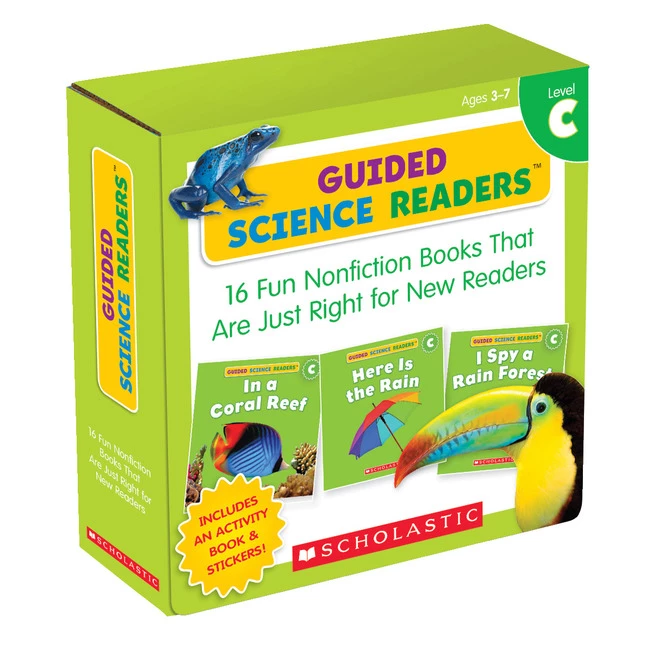 Scholastic provides Guided Science Reading Books that are fun for students in Grades PreK to 1. Set your child on the path to reading success with this exciting collection of little books on favorite science topics: bears, birds, rain forest, seeds, spring, and many more. These level C books feature engaging photos paired with simple text and are just right for readers who can sound out a few words. Includes a mini-activity book, motivating stickers, and parent tips. A great way to help children step up to the next reading level with ease.