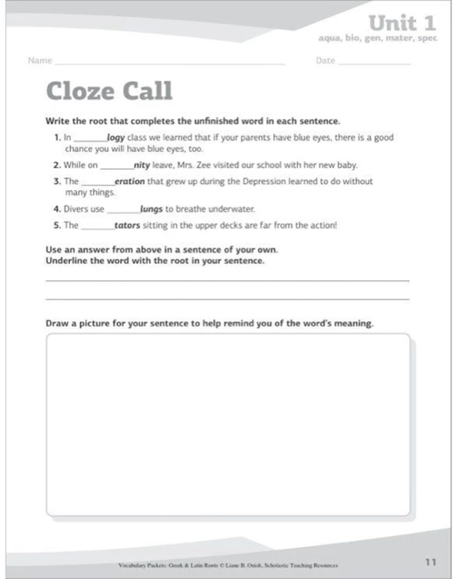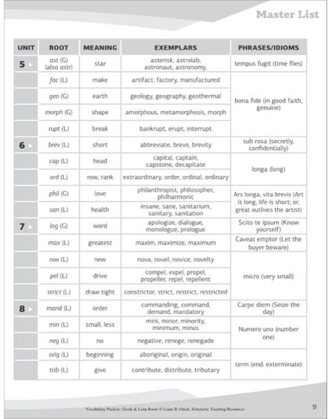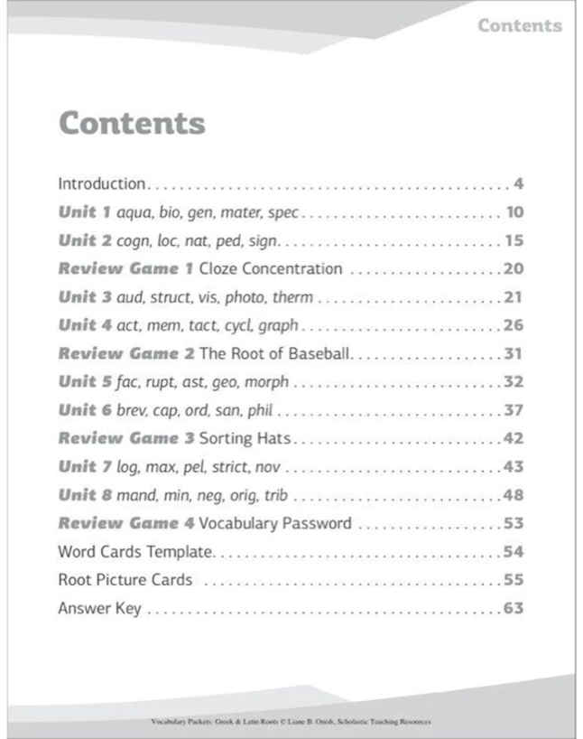 | Description | Vocab: Greek & Latin Roots |