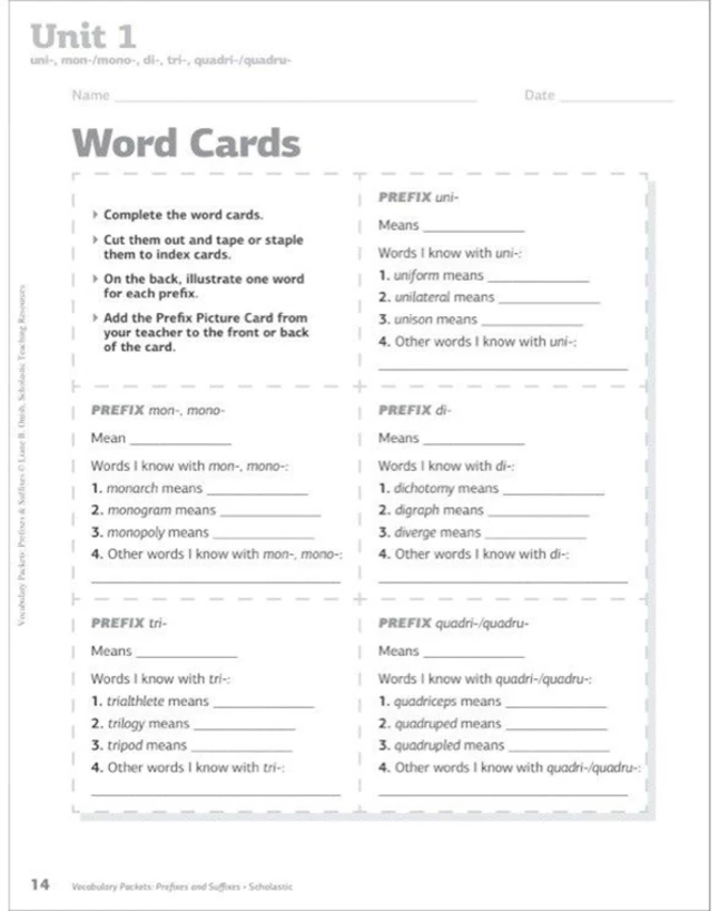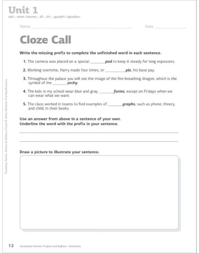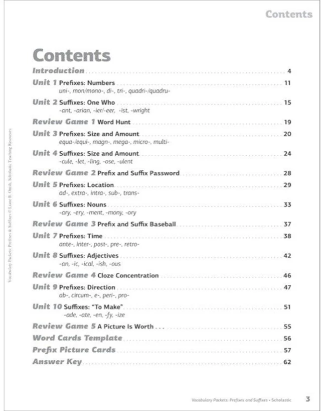 Ready-to-Go Learning Packets That Teach 50 Key Prefixes and Suffixes and Help Students Unlock the Meaning of Dozens and Dozens of Must-Know Vocabulary Words. Students sharpen their word-study skills and build vocabulary as they complete fun, independent puzzles and activities that introduce 50 essential prefixes and suffixes. Activities invite students to decode and acquire dozens of words they’ll encounter in grade-level texts. Includes 10 word-building activity packets, ready to reproduce for independent work or homework. Grades 4 to 8.